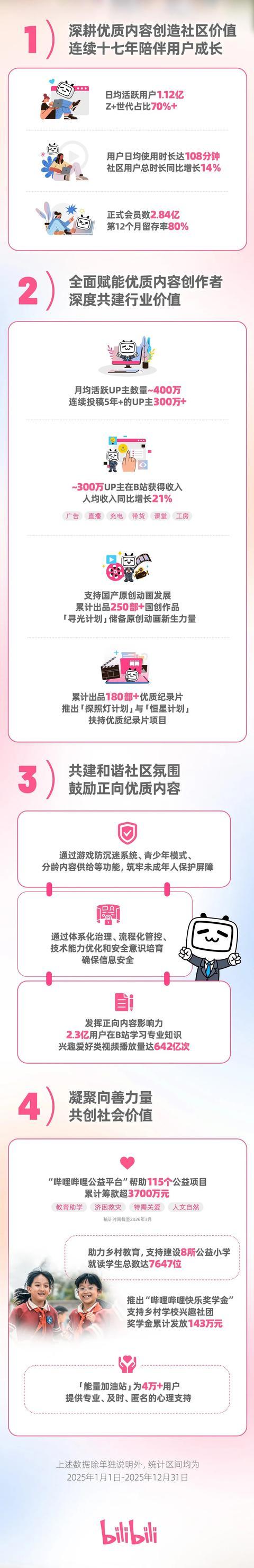 此外,遗弃 2026 年 3 月底,“哔哩哔哩公益平台”累计上线 115 个公益技俩,召募善款超 3700 万元,带动超 135 万东谈主次参与捐赠。